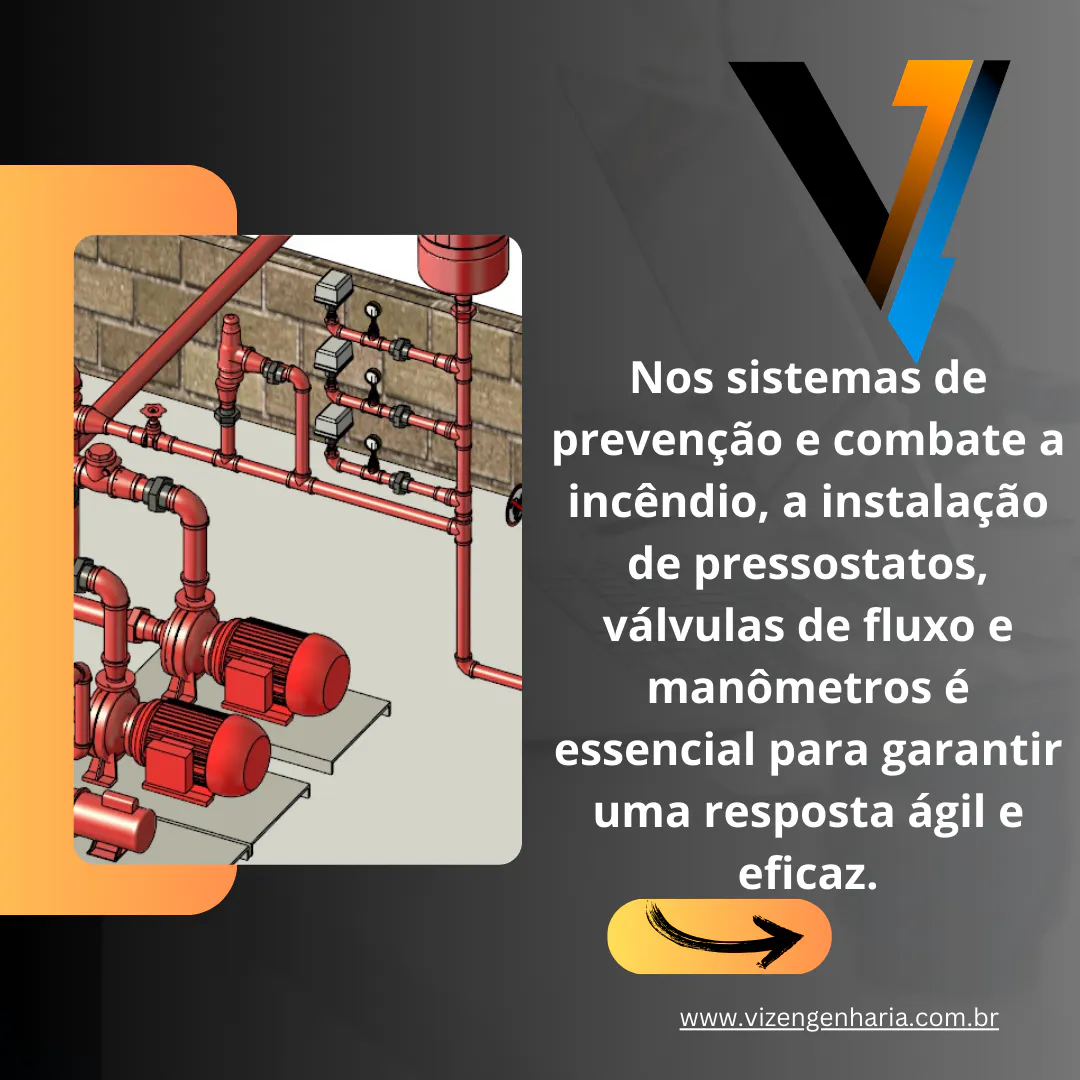 Nos sistemas de prevenção e combate a incêndio, a instalação de pressostatos, válvulas de fluxo e manômetros é essencial para garantir uma resposta ágil e eficaz. Cada componente desempenha uma função crítica no monitoramento e na segurança do sistema. Vamos entender o porquê: